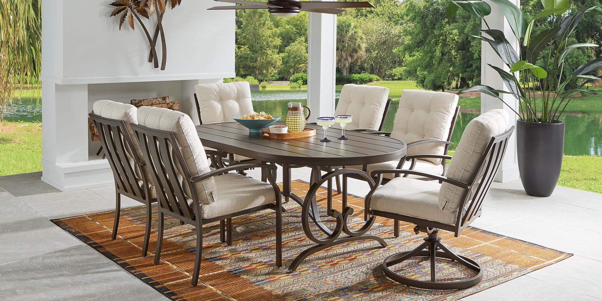 Shop for 7 piece patio dining set in patio dining sets. Get the best deals on patio rattan dining sets. 7 piece glass top patio dining set after shaver howard. International home amazonia13 piece extendable patio dining set. Vongrasig 9 piece small patio dining set, outdoor space saving pe wicker dining furniture set, glass patio dining table with cushioned wicker chairs and ottoman sets for lawn, garden, backyard (beige). Free delivery and returns on ebay plus items for plus members. Outdoor patio furniture is best stored in a dry storage space indoors or under a tarp to protect from the elements. Enjoy free shipping & browse our great selection of patio furniture, patio bar sets, patio bistro sets and more! Get ready to party with a 7 pc outdoor dining set. Our 7 piece patio dining sets are stylish, comfortable and maximize your budget giving more hungry mouths a place to sit and they ship within 5 business days. Sears has patio dining sets for enjoying meals outdoors. Dining set comes with 6 seat cushions and 6 coordinating lumbar pillows for even more visual appeal. Shop wayfair for all the best round patio dining sets.